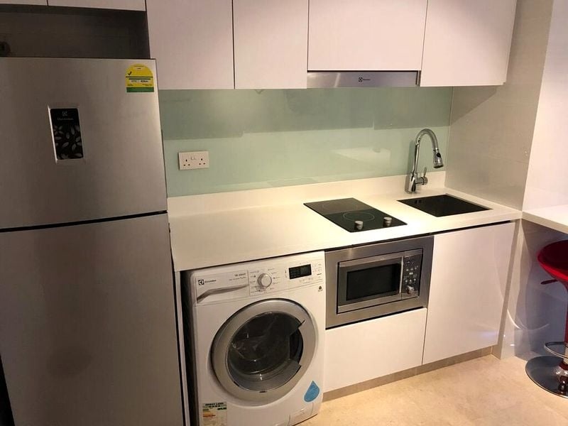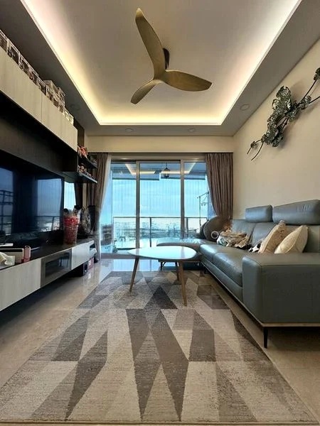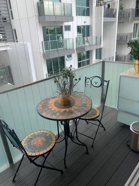 Step into a world of modern elegance as you enter this beautifully renovated 3-bedroom unit at EIGHT RIVERSUITES. The abundant natural light floods the space, accentuating the polished marble-look floor tiles and the sleek, minimalist finishes. Enjoy the urban views from your private balcony, complete with a hanging egg chair and a charming mosaic-top bistro set, perfect for relaxing evenings.