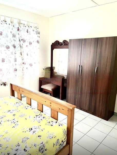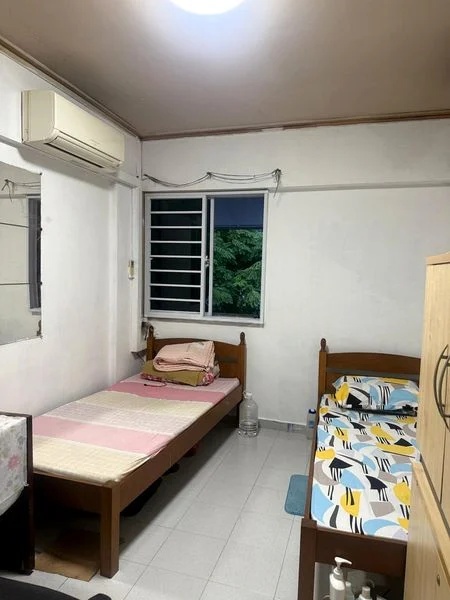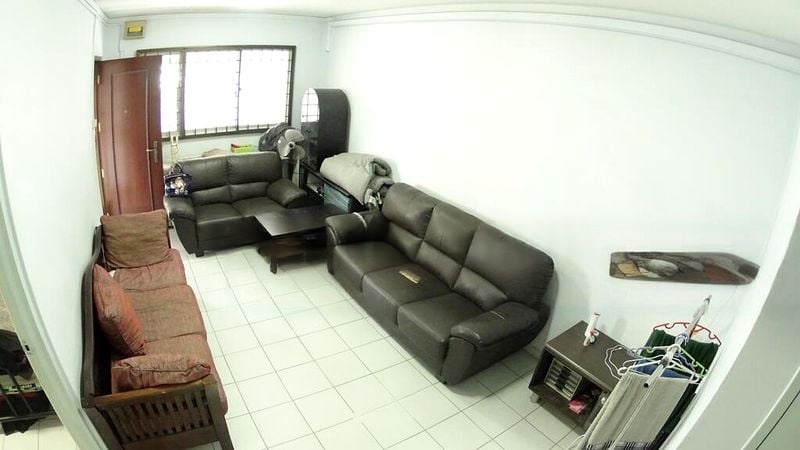Step into this functional 3-room HDB flat and experience the charm of its original layout. The moderate natural light filters through the windows, illuminating the galley kitchen with its black countertop and glass-fronted upper cabinets. The ambiance is practical, offering a comfortable space that invites you to envision your personal touch.