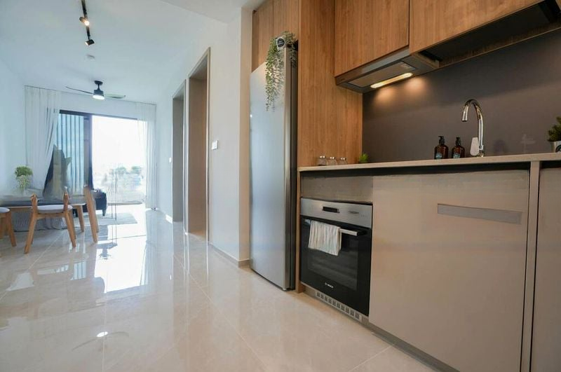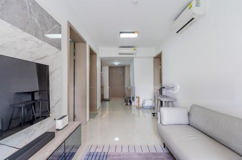 This well-appointed 2-bedroom unit boasts standout features including a luxurious rain shower in the bathroom, sleek wood-grain kitchen cabinets, and mirrored storage solutions that enhance both style and functionality. The bedrooms are thoughtfully designed with built-in wardrobes and large windows, ensuring comfort and practicality for every resident.