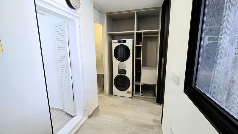 This spacious 3-bedroom, 2-bathroom layout boasts standout features including a sleek kitchen with light wood cabinetry, white stone countertops, and an integrated oven. The open-plan design seamlessly connects the living area to the balcony, where a ceiling fan enhances your comfort. Residents can also indulge in the luxurious amenities, including a large swimming pool, landscaped gardens, and a state-of-the-art gym equipped with modern fitness equipment.