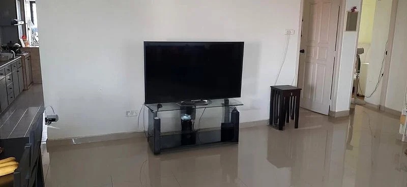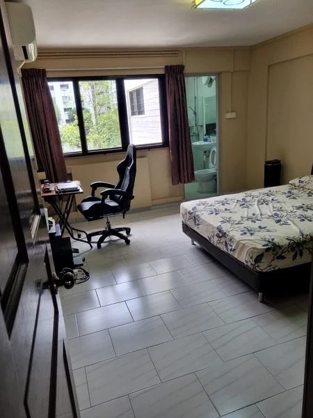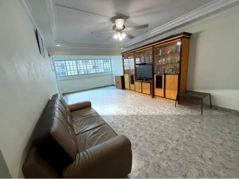 Step into this inviting 3-bedroom HDB flat and be greeted by a warm ambiance that feels both functional and lived-in. The moderate natural light filters through large sliding doors, illuminating the tiled flooring and highlighting the well-maintained finishes. Enjoy views of lush greenery and nearby residential buildings, creating a serene backdrop for your daily life.