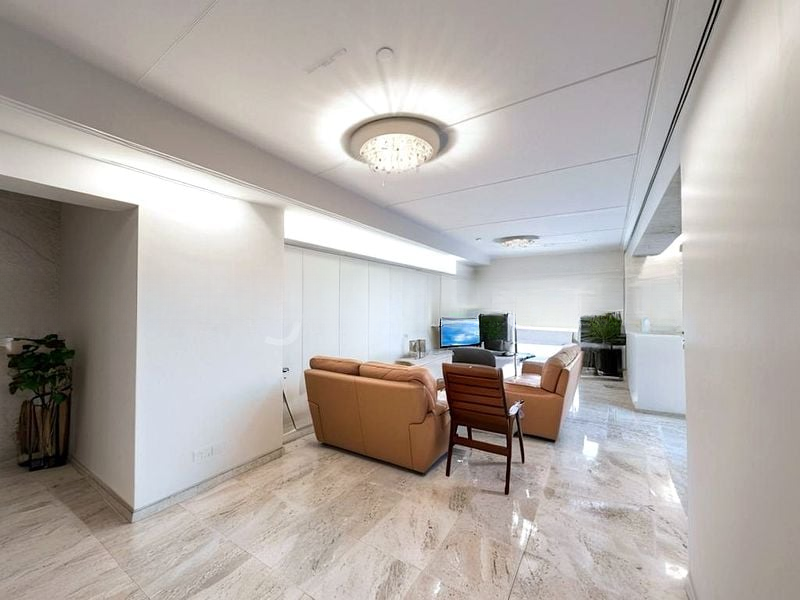 Step into a beautifully renovated oasis at 12 JLN BT MERAH, where modern minimalist design meets abundant natural light. The spacious living room greets you with marble-look tiled flooring and decorative ceiling lights, creating an inviting ambiance. Large windows frame views of lush greenery, enhancing the tranquil atmosphere throughout the unit.