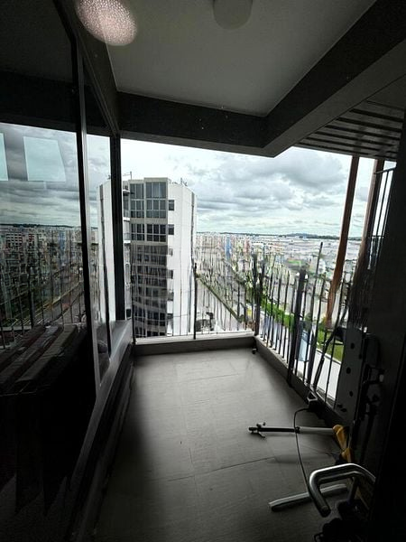 Step into a world of modern elegance as you enter this well-maintained 2-bedroom unit at North Park Residences. Abundant natural light floods through the floor-to-ceiling windows, illuminating the sleek white walls and light-colored flooring, creating a warm and inviting ambiance. The glass balcony railing offers unobstructed views of the vibrant urban landscape, making it the perfect spot to unwind.