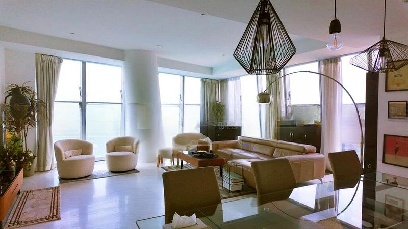 This well-maintained 3-bedroom, 4-bathroom unit boasts an open-concept living and dining area, perfect for entertaining. The modern leather sofa invites relaxation, while the glass dining table and geometric pendant lights add a contemporary touch. Each bedroom features wood flooring and large windows, offering a peaceful retreat with minimalist decor. Step outside to enjoy the expansive lap pool and wooden decking, ideal for sun-soaked afternoons and gatherings with friends.