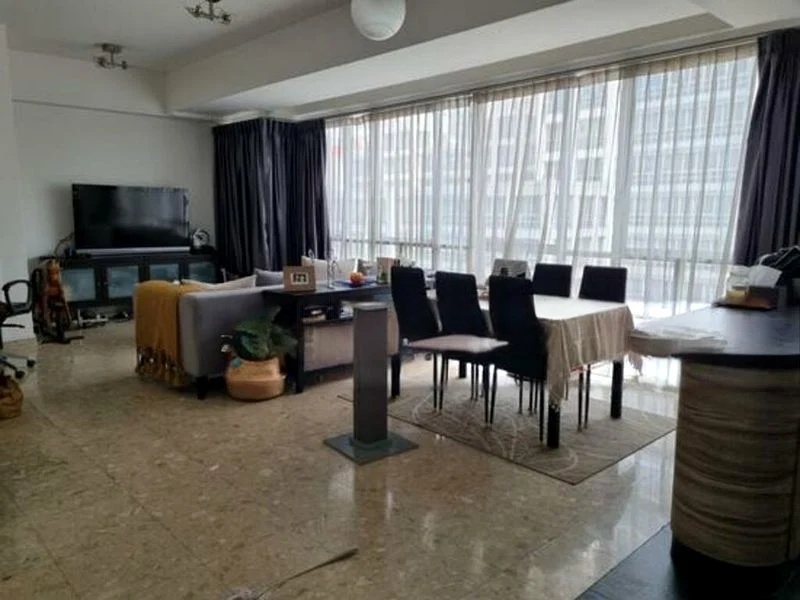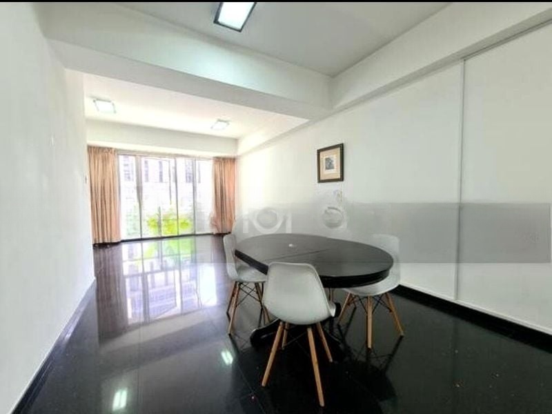 This thoughtfully designed unit features a spacious living room perfect for entertaining, complemented by a 6-seater dining set. The modern kitchen boasts a breakfast bar, built-in oven, and a large window that provides excellent ventilation. With its stylish wood-look laminate cabinets, this kitchen is both functional and aesthetically pleasing, making it a joy to cook in.