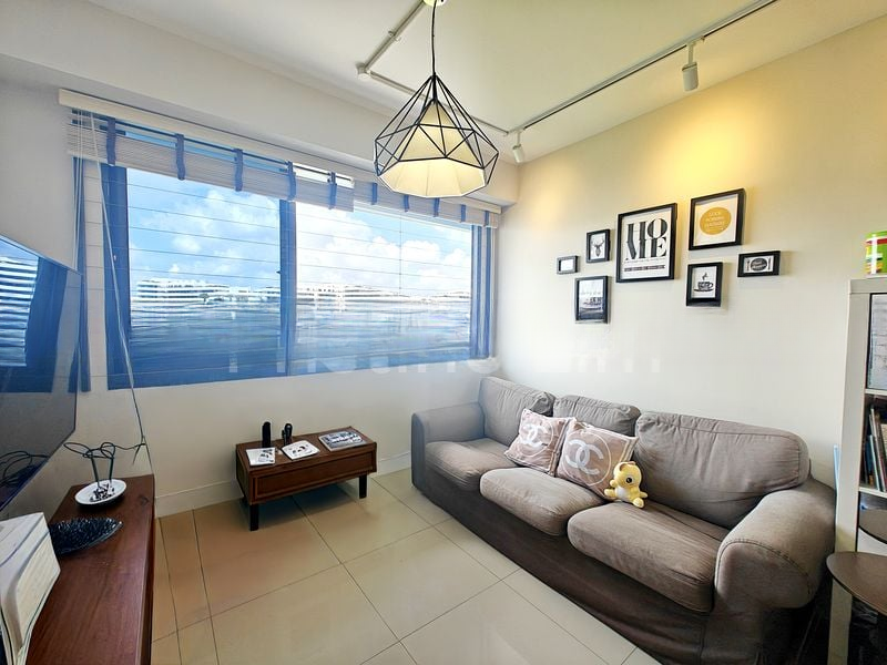 Step into a bright and airy sanctuary at 310B Punggol Walk, where abundant natural light floods the open-concept living space, accentuating the large format floor tiles and modern finishes. The gallery wall invites creativity, while the panoramic views of lush greenery and unique architectural buildings create a serene ambiance that feels like a breath of fresh air.