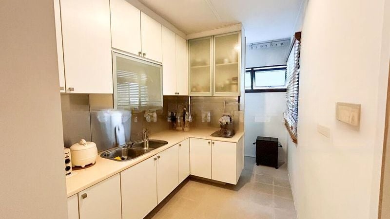 Step into this well-maintained 3-bedroom flat and feel the warmth of home. The light wood laminate flooring and functional layout create a welcoming ambiance, while the natural light filters through the windows, enhancing the lived-in charm. The living area, featuring an L-shaped sofa and a glass coffee table, invites relaxation and gatherings.