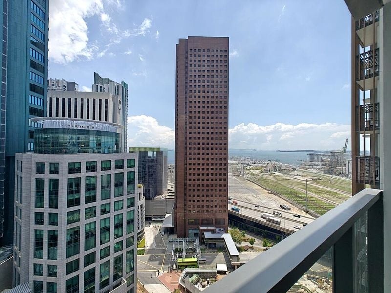 Step into a world of elegance as you enter this brand-new unit at ONE BERNAM. The abundant natural light floods through the floor-to-ceiling windows, illuminating the sleek dark marble flooring and creating a serene ambiance. With sliding glass doors leading to a balcony, you can enjoy breathtaking panoramic views of the city skyline and the sea, making every moment at home feel extraordinary.