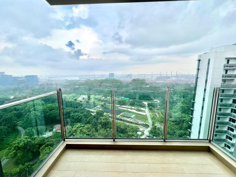 Step into this brand-new 2-bedroom unit at Normanton Park, where abundant natural light floods the modern minimalist space, creating an inviting ambiance. The open-concept living and dining area features polished tile flooring, seamlessly connecting to a balcony that offers panoramic views of lush greenery, perfect for relaxation and unwinding.