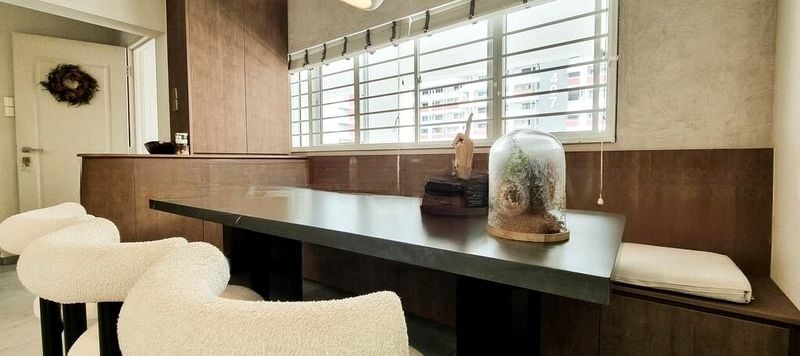 Step into a world of modern elegance as you enter this beautifully designed HDB unit. The open layout invites natural light to dance across the spacious living area, highlighting the sleek finishes and urban views that create a vibrant yet serene ambiance. The minimalist décor, accentuated by track lighting and an arched mirror, sets the perfect tone for contemporary living.