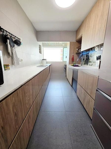 Step into this beautifully renovated 4-room flat and be greeted by an abundance of natural light that dances across the modern minimalist interiors. The large windows frame stunning views of lush greenery and the urban landscape, creating a serene ambiance that invites relaxation. The consistent wood-look flooring enhances the elegant feel, while the marble-look TV feature wall adds a touch of sophistication.