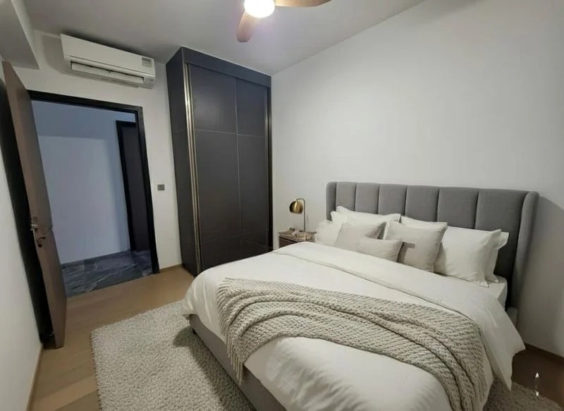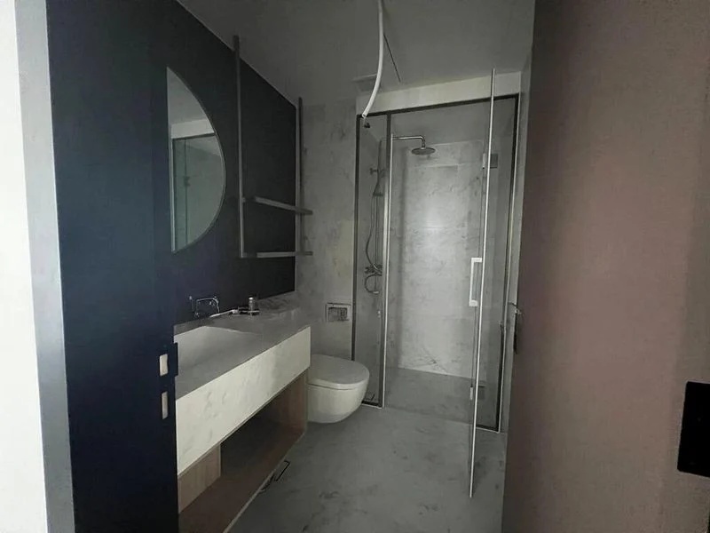 Step into a world of elegance as you enter this brand-new 1-bedroom unit at ONE BERNAM. The large marble-look floor tiles and white minimalist walls create a serene ambiance, while the natural light gently illuminates the space. Enjoy breathtaking views of the city skyline and the infinity-style swimming pool from your living area, making every moment spent here a visual delight.