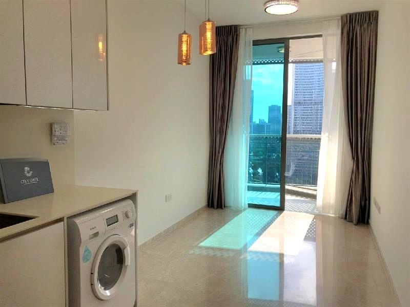 Step into this brand-new, modern minimalist unit at City Gate and be captivated by the abundant natural light flooding through sheer curtains, illuminating the elegant marble-look tile flooring. The panoramic views of the city skyline create an inspiring backdrop, making every moment spent here feel extraordinary.