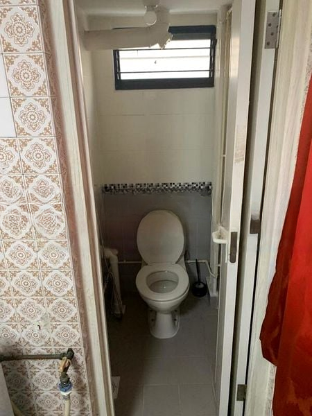 Step into a nostalgic haven where retro patterned floor tiles greet you at every turn, infusing the space with character and warmth. Natural light filters through the windows, illuminating the living area and offering serene views of lush greenery, creating a tranquil ambiance that feels like home.