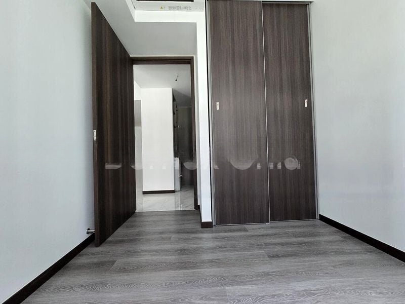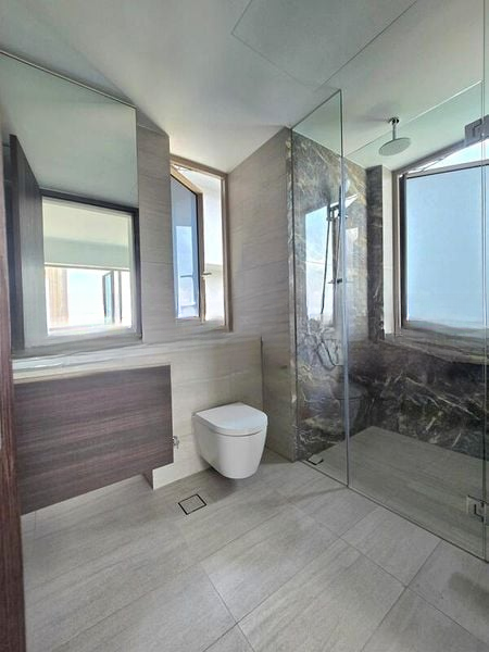 Step into a world of modern luxury as you enter this brand-new designer unit at Pasir Ris 8. Bathed in abundant natural light, the living room features exquisite designer wall panels and built-in illuminated shelving, creating an inviting ambiance. Floor-to-ceiling glass sliding doors seamlessly connect the indoor space to a private balcony, offering serene views of lush greenery.