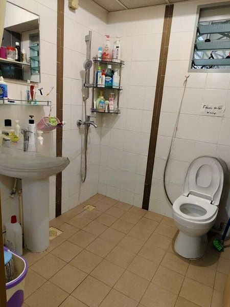 Step into this functional HDB flat and feel the warmth of home. The moderate natural light filters through large windows, illuminating the tiled flooring of the living room, where a cozy dining table and sofa bed await your personal touch. The ambiance is inviting yet practical, perfect for family gatherings or quiet evenings.