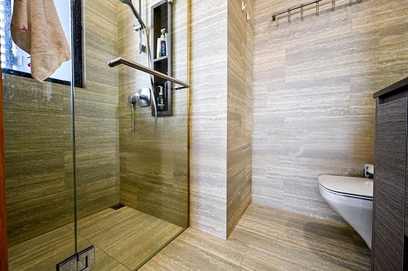 This well-maintained unit boasts a thoughtful layout with three bedrooms, including a compact bedroom with a built-in storage bed and a study desk. The open-concept kitchen features light wood cabinetry and integrated appliances, seamlessly connecting to the dining area adorned with elegant pendant and track lighting. The bathrooms are stylishly designed with stone vanity countertops and textured wall tiles, ensuring a luxurious experience.