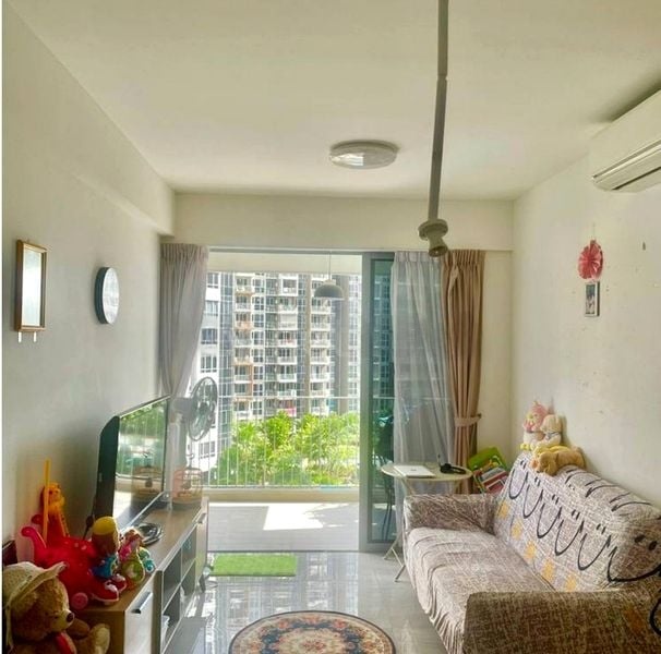 Step into a serene oasis at High Park Residences, where modern minimalist design meets comfort. The open-plan living and dining area welcomes you with light-colored floor tiles and a seamless flow to the balcony, offering refreshing views of lush greenery and surrounding residential buildings. Natural light filters through, creating an inviting ambiance that makes you feel right at home.