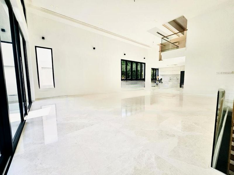 Step into a world of luxury as you enter this brand-new designer home, where abundant natural light floods the open-concept living space. The double-volume high ceiling and floor-to-ceiling windows create a bright and airy ambiance, while the polished large-format marble flooring adds a touch of elegance. Enjoy serene views of the private lap pool and lush greenery, making every moment spent here feel like a retreat.