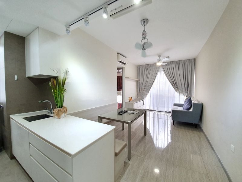 Step into a world of elegance and tranquility as you enter this stunning 5-bedroom unit at STRATUM. The abundant natural light floods the space, highlighting the marble-look flooring and creating a bright and airy ambiance. Enjoy picturesque views of the pool and lush greenery from the glass-railed balcony, inviting you to relax and unwind in this serene setting.