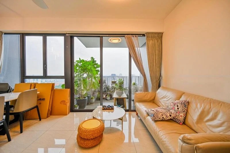 Step into a brand-new sanctuary at GEM RESIDENCES, where abundant natural light floods the open-concept living area, accentuating the polished floor tiles and modern minimalist design. Floor-to-ceiling balcony doors invite the lush greenery and vibrant street views inside, creating a serene ambiance that feels both spacious and inviting.