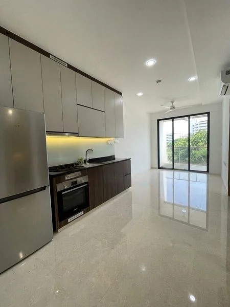 Step into a sanctuary of modern minimalism where abundant natural light floods through floor-to-ceiling windows, illuminating the sleek finishes and inviting ambiance of this well-maintained unit. The open-concept living area seamlessly connects to a private balcony, offering serene views of lush greenery and the surrounding residential area, making it a perfect retreat from the bustling city.