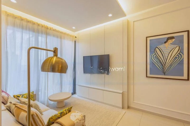 Step into this brand-new 2-bedroom condominium at MIDWOOD and be greeted by an abundance of natural light that floods the open-plan living space. The modern minimalist design is accentuated by bright tiled flooring and large sliding glass doors that lead to a private balcony, offering serene views of the pool and lush greenery.