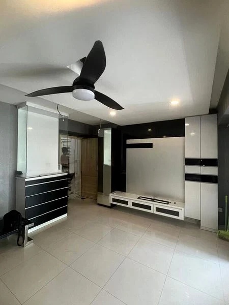 Step into a beautifully renovated 4-room flat that exudes modern elegance. The polished tile flooring reflects the natural light that pours in through the bay windows, while the full-height mirror walls create an illusion of space, enhancing the bright ambiance. A striking crystal chandelier hangs gracefully above the dining area, inviting you to experience a sophisticated yet comfortable lifestyle.
