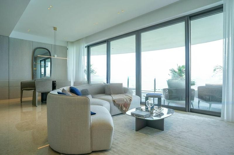 Step into a world of luxury as you enter this beautifully designed unit at Cape Royale. The abundant natural light floods the space, highlighting the exquisite finishes and creating a bright, airy ambiance. The large curved balcony, complete with wood decking and a dedicated outdoor dining area, offers panoramic views of the sea, pool, and lush greenery, making it the perfect spot for relaxation or entertaining.