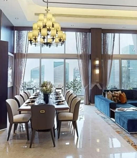 Step into a world of elegance as you enter this stunning unit at V ON SHENTON. The abundant natural light floods through the floor-to-ceiling windows, illuminating the luxurious marble flooring and highlighting the grand tiered chandelier that hangs gracefully above the spacious dining area. The modern ambiance is further enhanced by the captivating urban views, including the iconic Westin building, creating an inviting atmosphere that feels both stylish and serene.