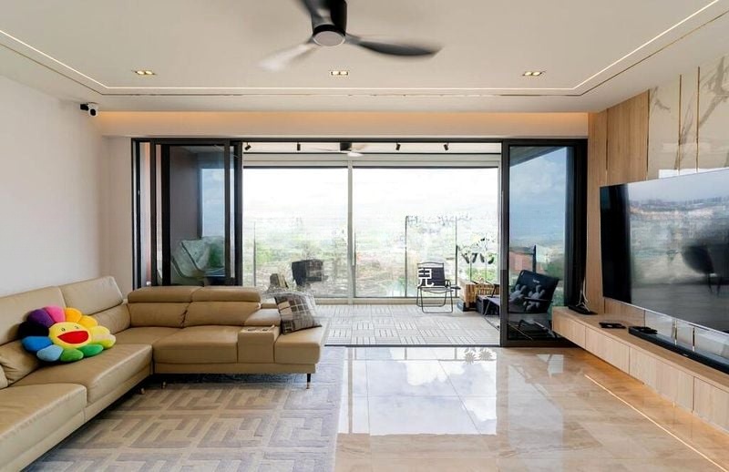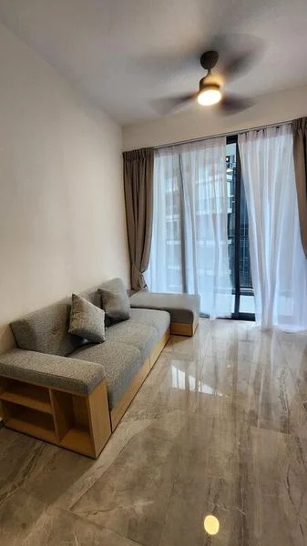 Step into this brand-new, fully-furnished unit and be greeted by a serene ambiance accentuated by polished grey floor tiles and full-height curtains that invite natural light. The modern minimalist design creates a warm and inviting atmosphere, while the views of the lap pool and lush greenery provide a refreshing backdrop to your living space.