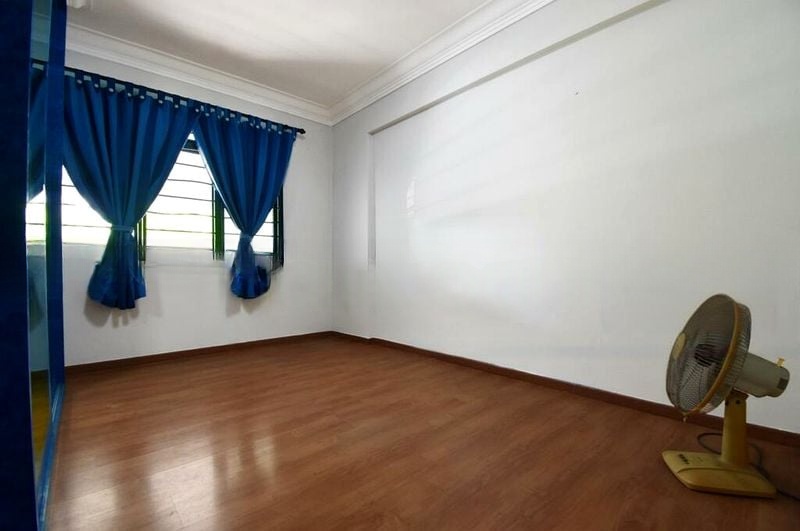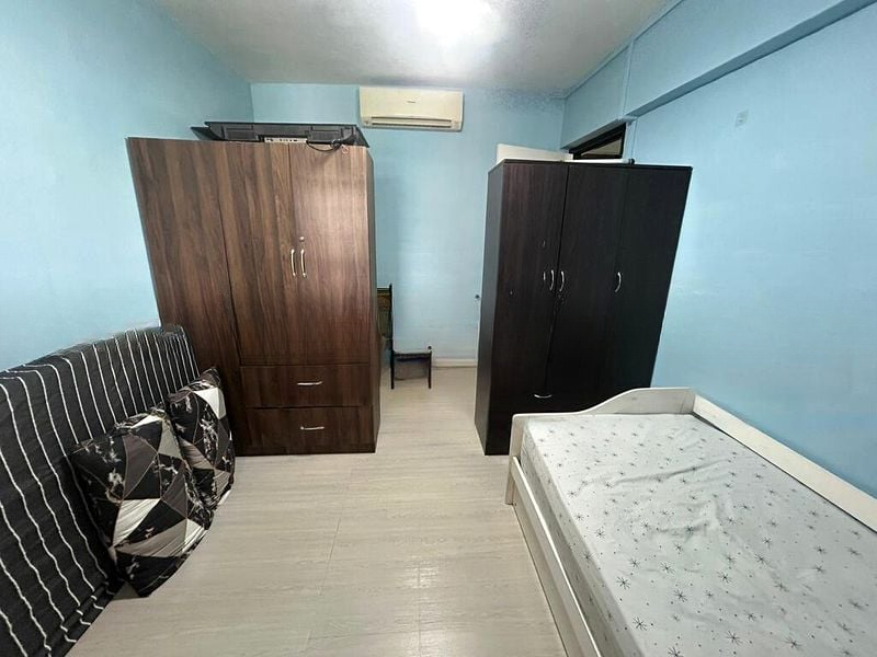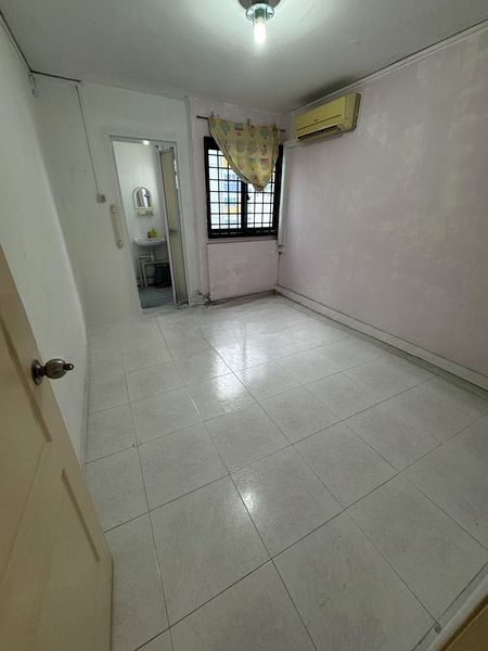 Step into this inviting 2-bedroom flat and feel the warmth of a simple yet functional ambiance. The moderate natural light filters through the windows, illuminating the tiled flooring and highlighting the greenery outside. With a minimalist layout, the living room offers a cozy space to unwind, while the galley kitchen, adorned with wall-to-wall white tiling and ample wooden cabinetry, is perfect for culinary adventures.