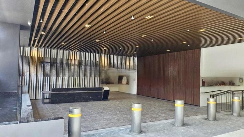 Step into this brand-new, modern minimalist unit at The Commodore, where large format marble-look floor tiles create a seamless flow throughout the open living and dining area. Bathed in natural light, the space offers a refreshing ambiance, complemented by views of lush greenery that invite tranquility into your home.
