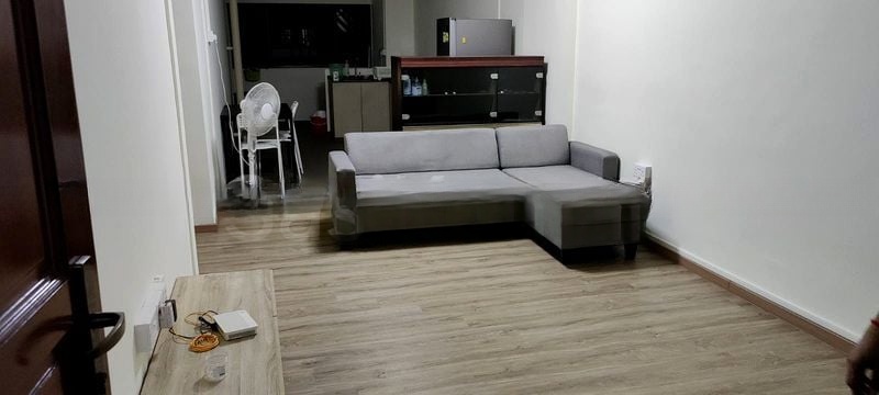 This 2-bedroom flat features a fully-furnished interior with standout elements such as stainless steel kitchen countertops and a built-in sliding wardrobe in the bedroom. The kitchen is designed for functionality, equipped with ample storage and a large window for ventilation, while the bedrooms provide a cozy retreat with a wall-mounted air conditioning unit and a wooden dressing table. Every corner of this home reflects thoughtful renovation, ensuring comfort and style.