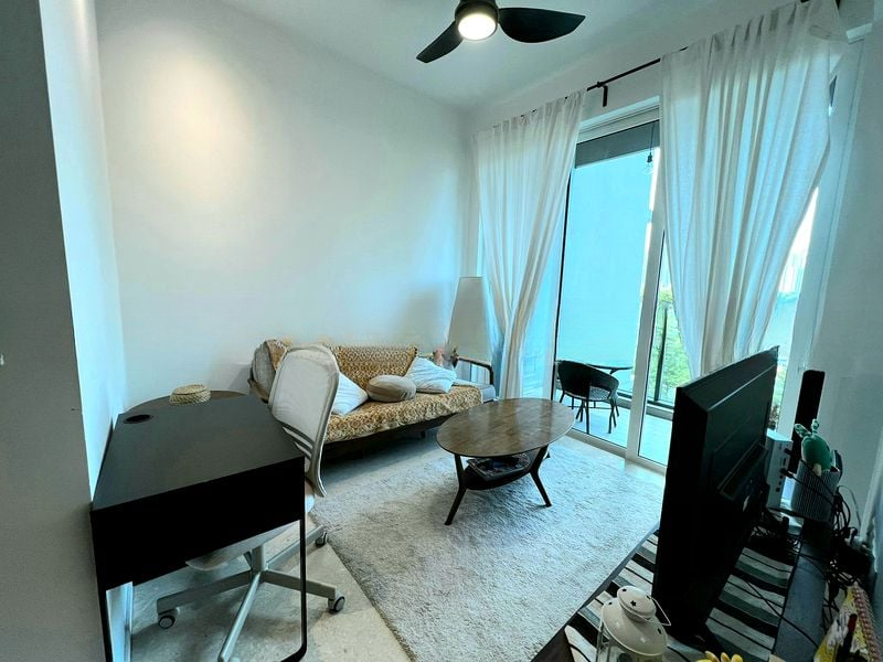 Step into a world of modern elegance as you enter this beautifully renovated 2-bedroom unit at Principal Garden. Bathed in abundant natural light, the open-concept living and dining area features a sleek marble-top dining table and a stylish leather sofa, perfect for both relaxation and entertaining. The glass partition kitchen showcases wood-grain cabinetry and high-end appliances, while the balcony offers unobstructed views of the city skyline and lush greenery, creating a serene retreat in the heart of the city.