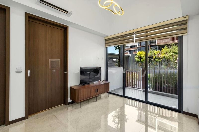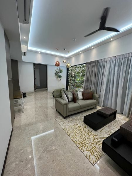 Step into a sanctuary of modern elegance at ROYALGREEN, where abundant natural light dances across the marble-look floor tiles, creating a bright and airy ambiance. The open-concept living area seamlessly connects to a private balcony, offering unblocked views of lush greenery that invite tranquility into your home.