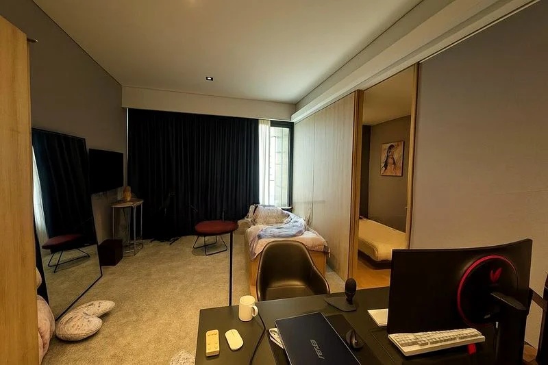 Step into a modern minimalist haven where abundant natural light floods through floor-to-ceiling windows, offering stunning views of the city skyline and lush greenery. The well-maintained unit at OUE Twin Peaks features designer finishes that create an inviting ambiance, perfect for relaxation or entertaining.