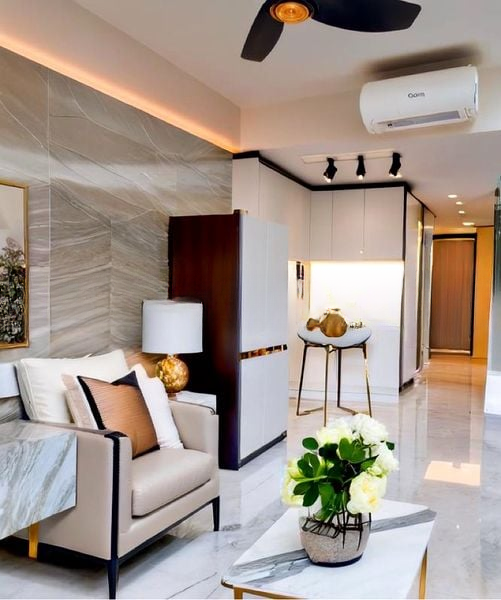 Step into a world of modern luxury as you enter this beautifully designed unit at Uptown @ Farrer. Abundant natural light floods through the floor-to-ceiling windows, illuminating the marble-look wall panels and designer furnishings that create an inviting ambiance. The views of the pool, city skyline, and lush greenery provide a serene backdrop, making every moment spent here feel like a retreat.