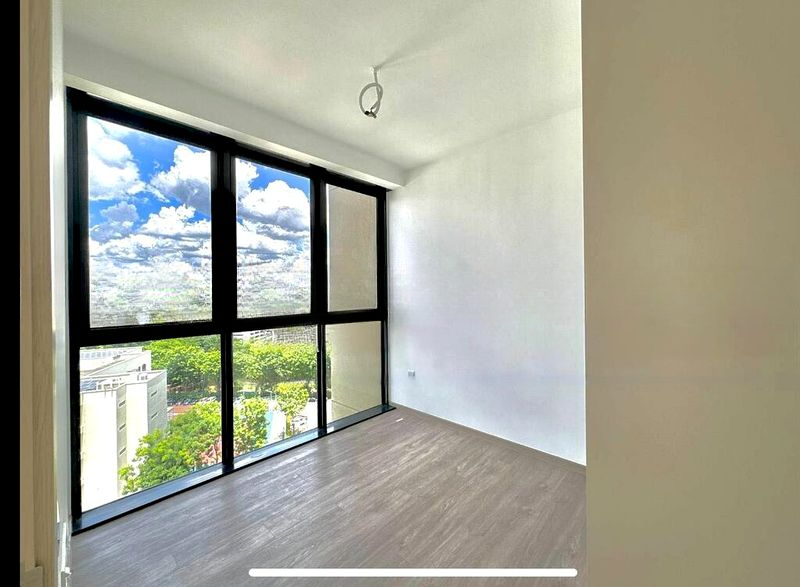 This well-maintained 3-bedroom unit boasts an open-concept layout, featuring a round marble dining table that complements the decorative gold-toned wall art. The L-shaped kitchen, complete with a glass partition, is equipped with high-end stainless steel appliances and white countertops, making it a chef’s dream. The master bedroom offers a serene retreat with its tufted headboard, balcony access, and built-in sliding wardrobe, while the common bedroom includes an integrated study desk for added convenience.