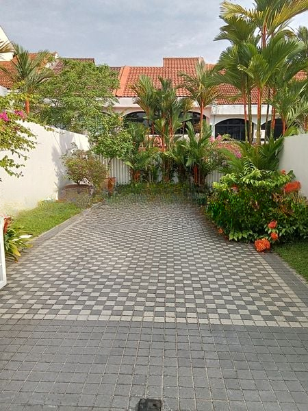 Step into this inviting sanctuary where abundant natural light floods through large arched windows, illuminating the cozy ambiance of the living spaces. The well-maintained interiors boast white tiled flooring and a decorative chandelier, creating an elegant yet warm atmosphere that welcomes you home. Outside, the checkerboard paved driveway and lush landscaping set the stage for tranquil outdoor living, perfect for relaxation or entertaining.