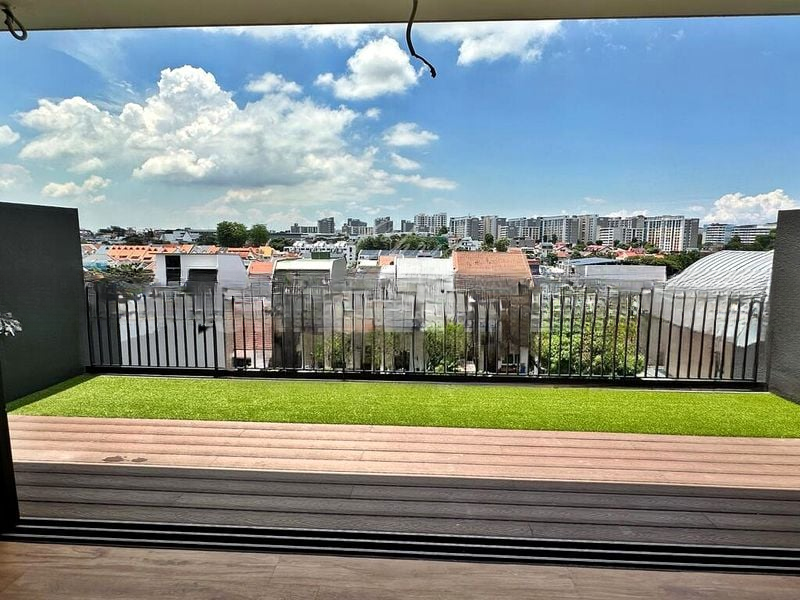 Step into a world of contemporary elegance as you enter this brand-new home in Serangoon Garden Estate. The abundant natural light floods the open living area through large sliding glass doors, creating a warm and inviting ambiance. With a striking view of the neighborhood and city skyline, the modern minimalist design is accentuated by wood-look flooring and recessed lighting, making every corner a visual delight.