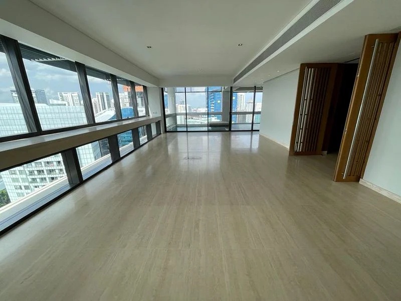 Step into a world of elegance and sophistication as you enter this brand-new condominium at HANA on Tomlinson Road. The abundant natural light floods the open-concept living room through the floor-to-ceiling glass doors, creating a bright and airy ambiance. Enjoy breathtaking views of the city skyline and lush greenery from the large curved balcony, which features a stunning wooden ceiling that adds warmth to the modern aesthetic.