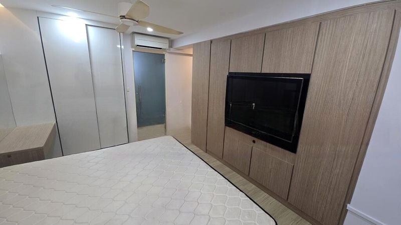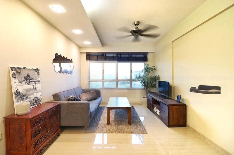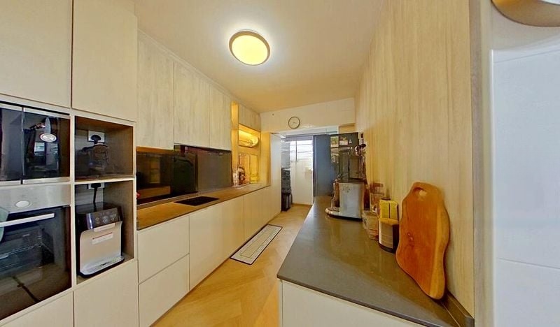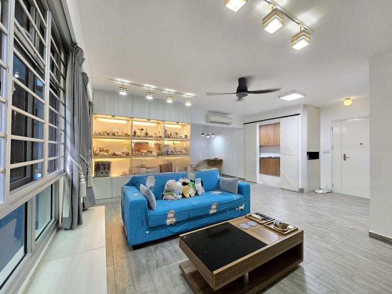 Step into a bright and airy sanctuary at 162A Rivervale Cres, where abundant natural light floods the spacious living area, accentuating the modern finishes and elegant design. The large built-in display cabinet invites you to showcase your treasures, while the wood-look flooring adds warmth to the contemporary ambiance. Enjoy serene views of lush greenery from your windows, creating a peaceful retreat in the heart of Sengkang.
