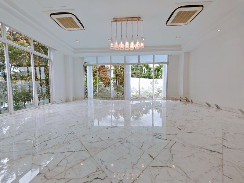 Step into a world of elegance and tranquility as you enter this magnificent villa, where abundant natural light floods through floor-to-ceiling windows, illuminating the spacious open layout. The bright and airy ambiance is complemented by high ceilings and grand architectural columns, creating a captivating first impression. Enjoy serene views of the private swimming pool and lush greenery from the comfort of your living area, designed for both relaxation and entertaining.