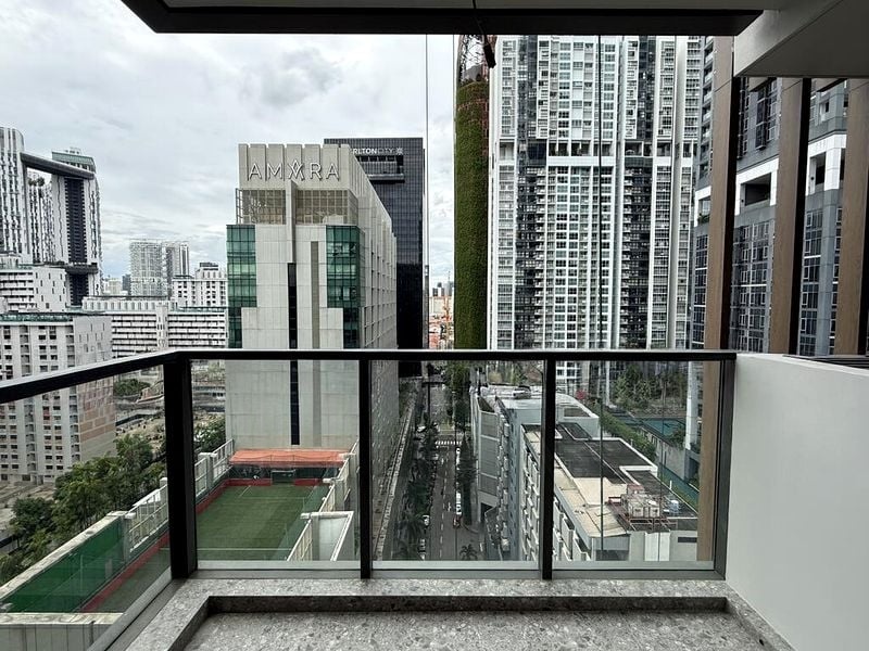 Step into this brand-new unit at ONE BERNAM and be captivated by the abundant natural light flooding through the floor-to-ceiling windows, framing breathtaking views of the city skyline and lush greenery. The modern minimalist design, accentuated by dark marble-look flooring, creates an inviting ambiance that feels both luxurious and contemporary.