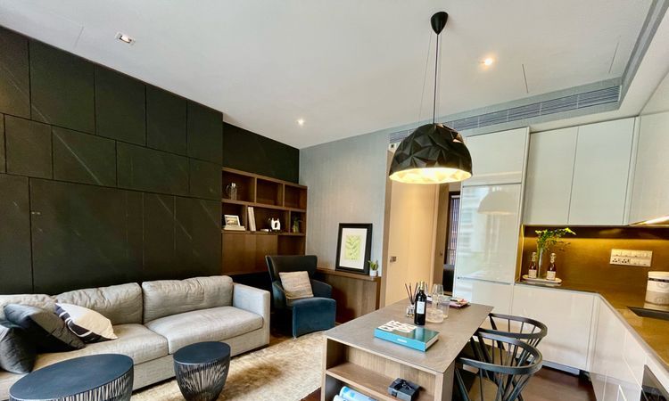 Step into a world of modern elegance as you enter this beautifully renovated 1-bedroom unit at Lloyd Sixtyfive. The double-volume living area welcomes you with its impressive height, complemented by dark wood flooring and abundant natural light filtering through the full-length glass doors. The urban views from the balcony create a serene backdrop, perfect for unwinding after a long day.