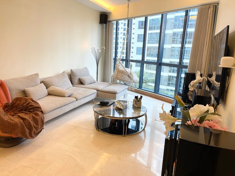 This well-maintained 3-bedroom condo boasts standout features including a glass-enclosed kitchen with modern cabinetry, a round marble dining table complemented by stylish wire-frame chairs, and spacious bedrooms with built-in wardrobes. The master bedroom offers a work desk and cove lighting, while the second bedroom includes integrated headboard lighting and a study nook, making it ideal for both rest and productivity.