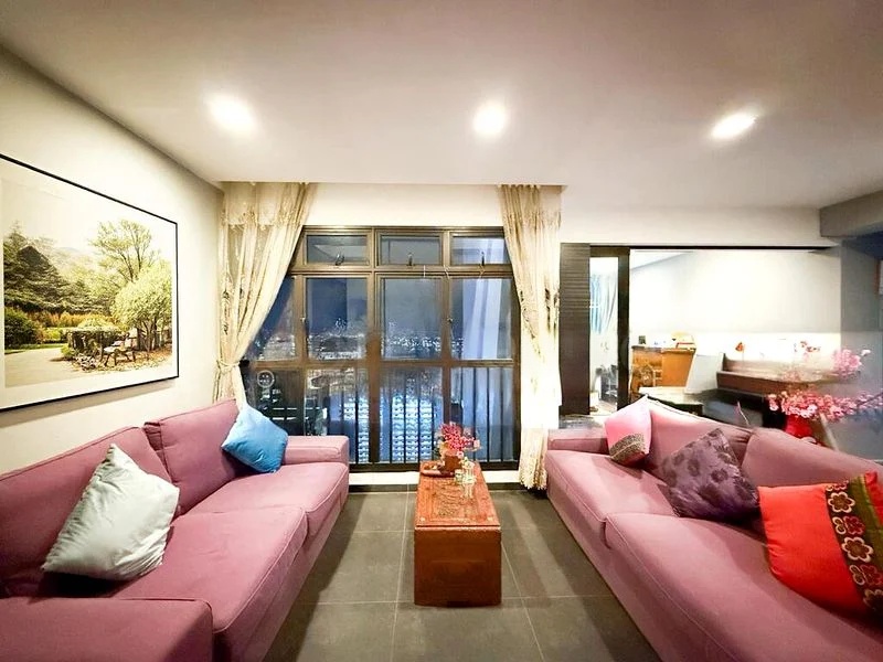 Step into this beautifully renovated 3-bedroom flat and be captivated by the modern minimalist ambiance that greets you. The large windows flood the living room with natural light, offering stunning views of the city skyline. The sleek black kitchen cabinetry paired with white countertops creates a striking contrast, while the glass kitchen partition adds a touch of elegance to the space.