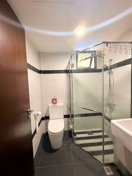This well-maintained 3-bedroom, 2-bathroom unit features an open-plan layout that seamlessly connects the living, dining, and kitchen areas. The L-shaped kitchen boasts two-tone cabinetry, a built-in oven, and a glass backsplash that creates a modern feel. Each bedroom is thoughtfully designed with large windows, ensuring ample light and comfort, while ceiling fans in multiple rooms provide a refreshing breeze.
