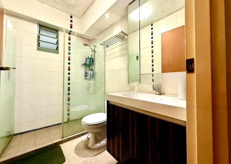 Step into this well-maintained 2-bedroom flat and be greeted by an inviting ambiance, enhanced by natural light filtering through the windows. The views extend beyond the lush greenery and urban landscape, offering a serene backdrop of the nearby school and HDB blocks, creating a peaceful living environment.